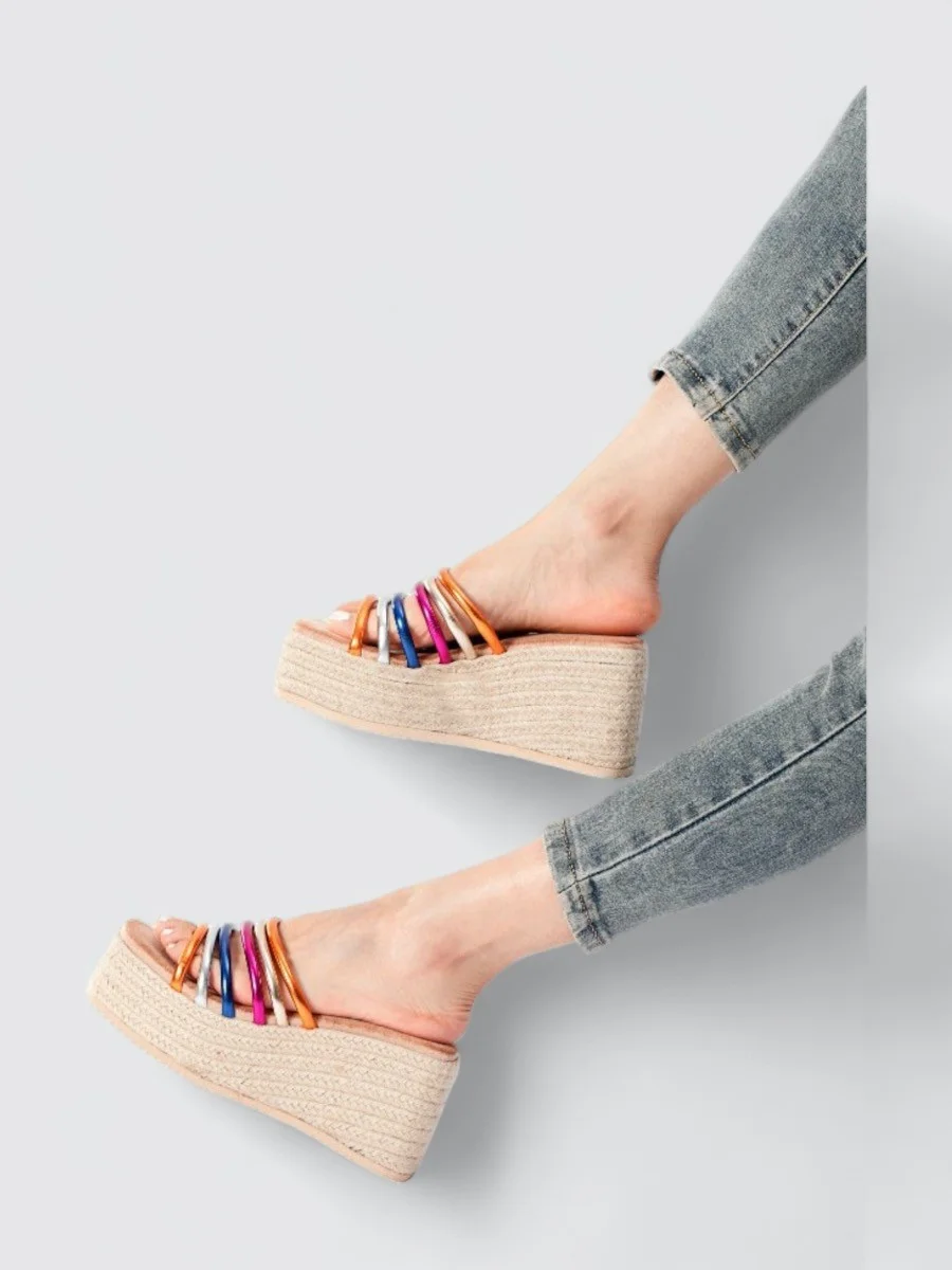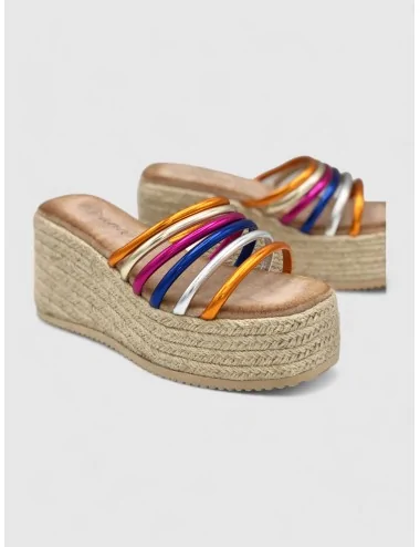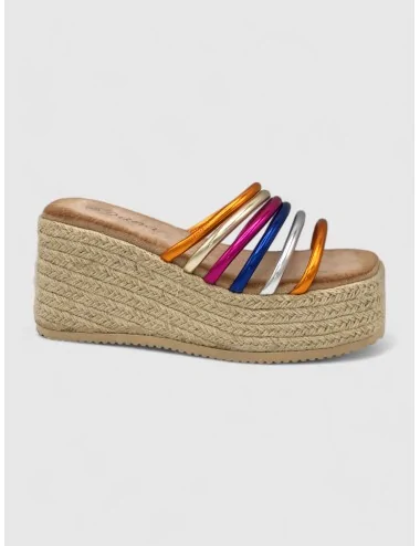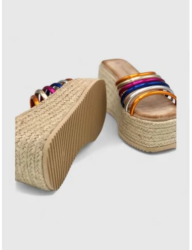 Sandalias Con Plataforma de Esparto y Tiras Lerca Color