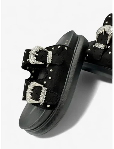 Sandalias con Plataforma y Detalle de Hebilla plateada Tirli Noir