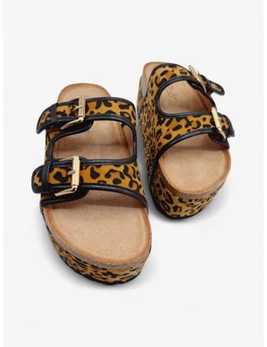 Sandalias con Plataforma y Detalles Dorados Valmir Animal Print