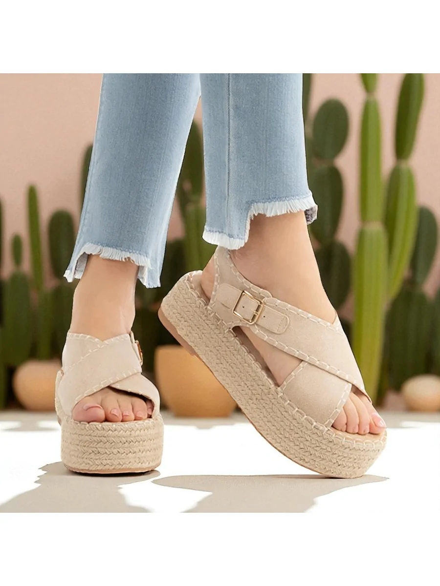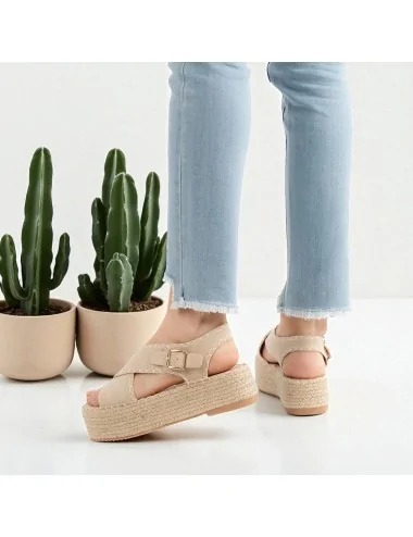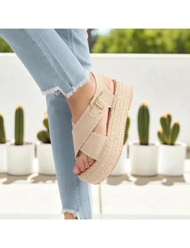 Sandalia con Plataforma de Esparto Lusia Beige