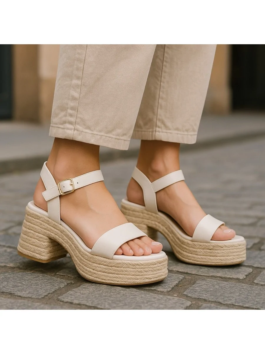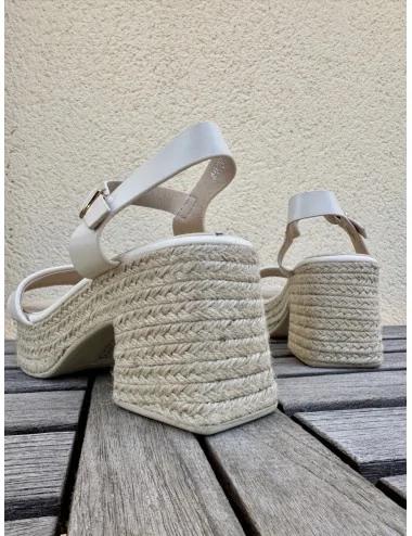 Sandalias con Tacón Grueso de Esparto Laives Beige